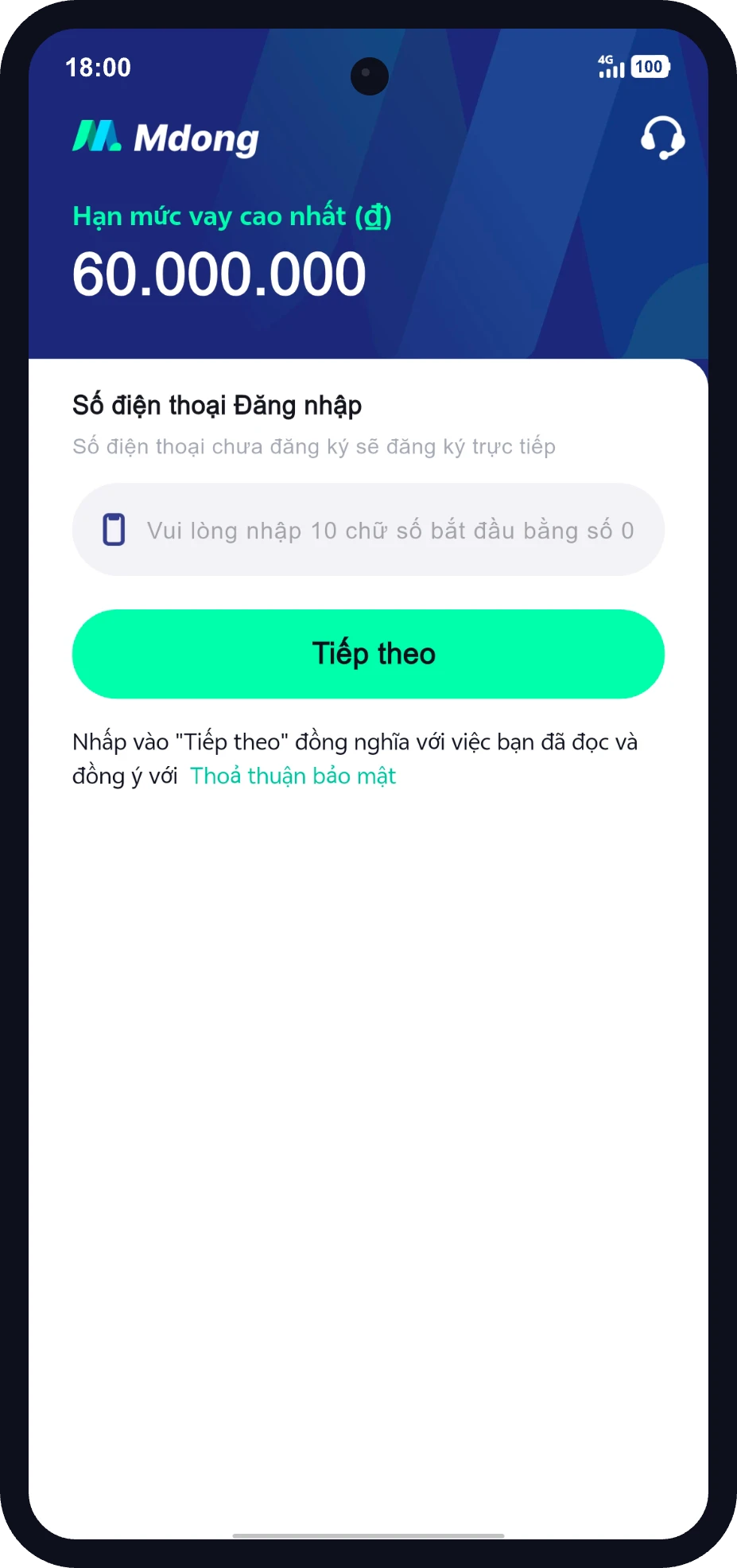 Người dùng đăng ký tài khoản bằng số điện thoại di động và hoàn thành xác thực để đăng nhập.